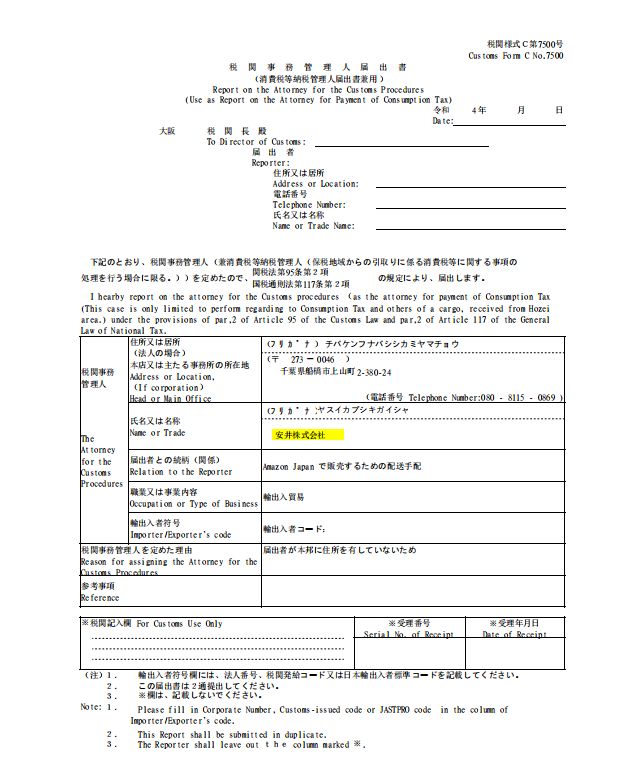 1.税関事務管理人届出書